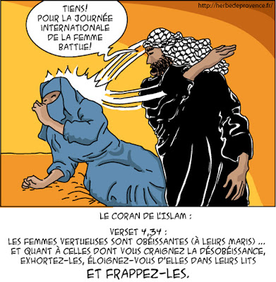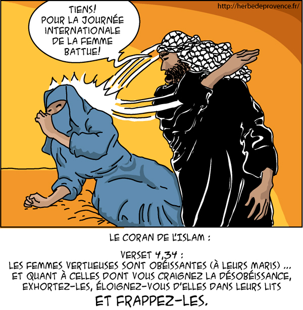 D’après le Coran, battre sa femme est OK (Coran 4, 23-24).