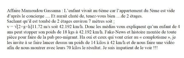 Macron savait, forcément, il y avait forcément autour de lui des gens capables de dire ce que nous avons tous dit tout de suite dans la patriosphère. Je ne suis pas professeur de physique mais il est impossible qu’un gosse de 4 ans tombant de 2 étages plus haut se rattrape en passant près d’un balcon. Pourtant Macron l’a reçu à l’Elysée, l’a naturalisé, l’a fait entrer chez les Pompiers de Paris. Je peux vous assurer que j’ai vu beaucoup de jeunes de talent rêver d’y entrer et ne pas pouvoir le faire….