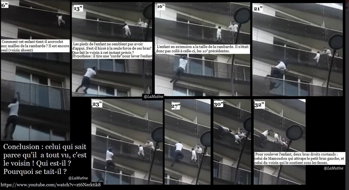 Le voisin est-il complice ? Celui qui a filmé est-il complice ? Mamoudou Gassama passait-il là par hasard, faisait-il partie de la mise en scène volontairement ou a-t-il été conduit ici par un des participants ?