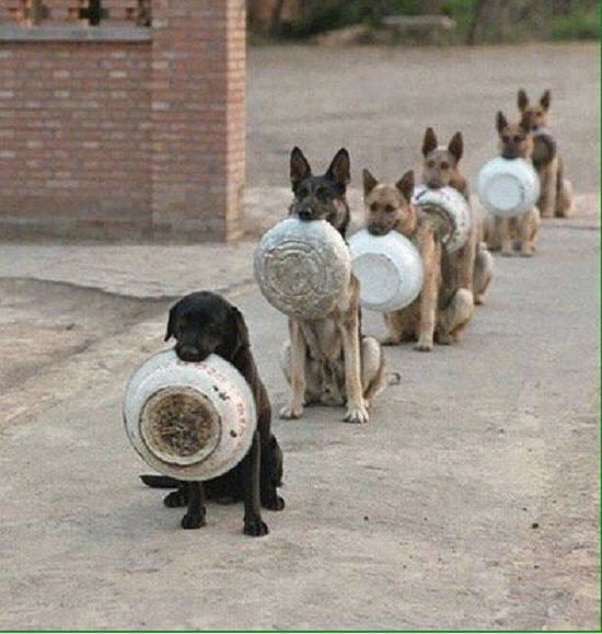 les six petits chiens avec leur assiette, le premier aux oreilles baissées, serait-ce Darmanin ??