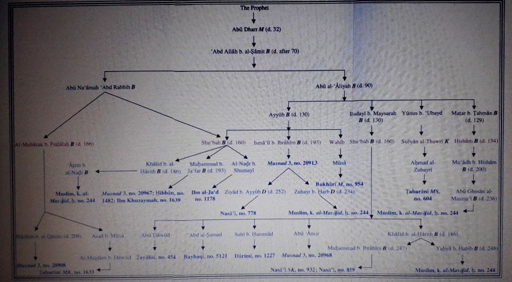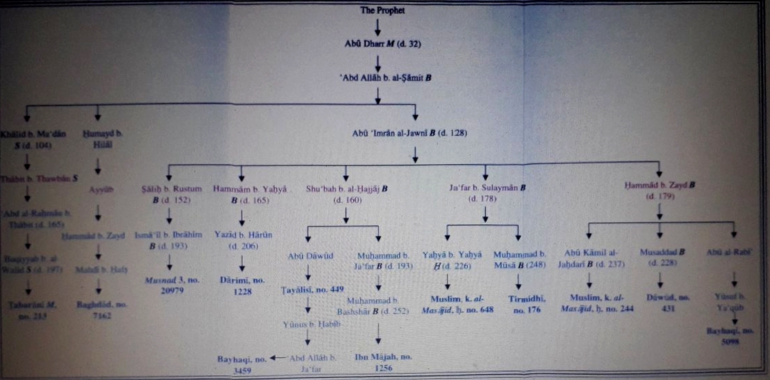 En fait, la pratique systématique de l’isnâd ou chaîne de transmission ne s’est mise en place que progressivement. Au 8e siècle par exemple, le commentateur du Coran Muqâtil [m. 765] ne mentionnait aucune chaîne de transmetteurs à l’appui de ses récits sur les circonstances de tel ou tel message.