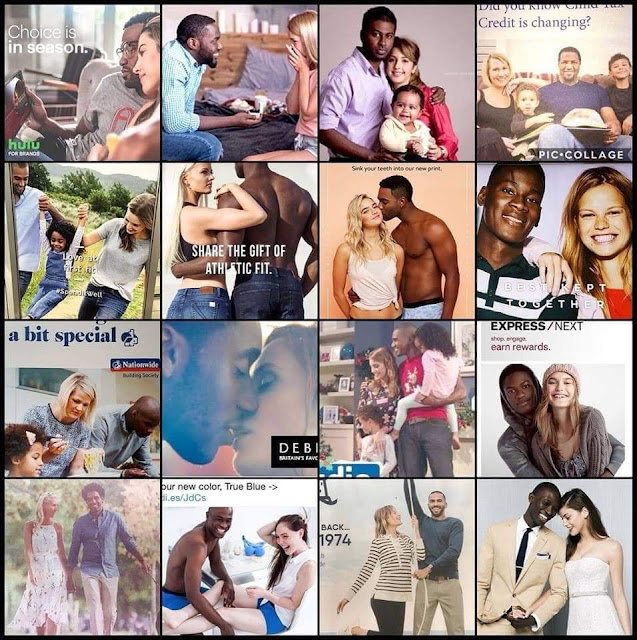 Intéressant et interpellant de remarquer que sur les 16 photos de propagande en faveur du métissage, c’est toujours l’homme qui est noir et la femme blanche. L’homme noir incarne la domination masculine et la femme la soumission féminine que l’on s’efforce de nous imposer comme l’idéal à atteindre.