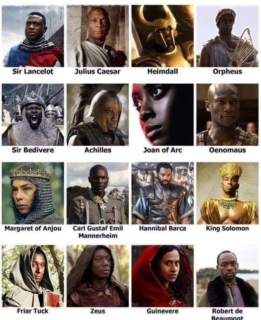 Mais il y a plus, non seulement l’histoire est réécrite, mais les personnages historiques eux-mêmes commencent à être remplacés par des minorités visibles pour satisfaire cet agenda globaliste : il s’agit de montrer des personnages de couleur dans les histoires européennes !!!