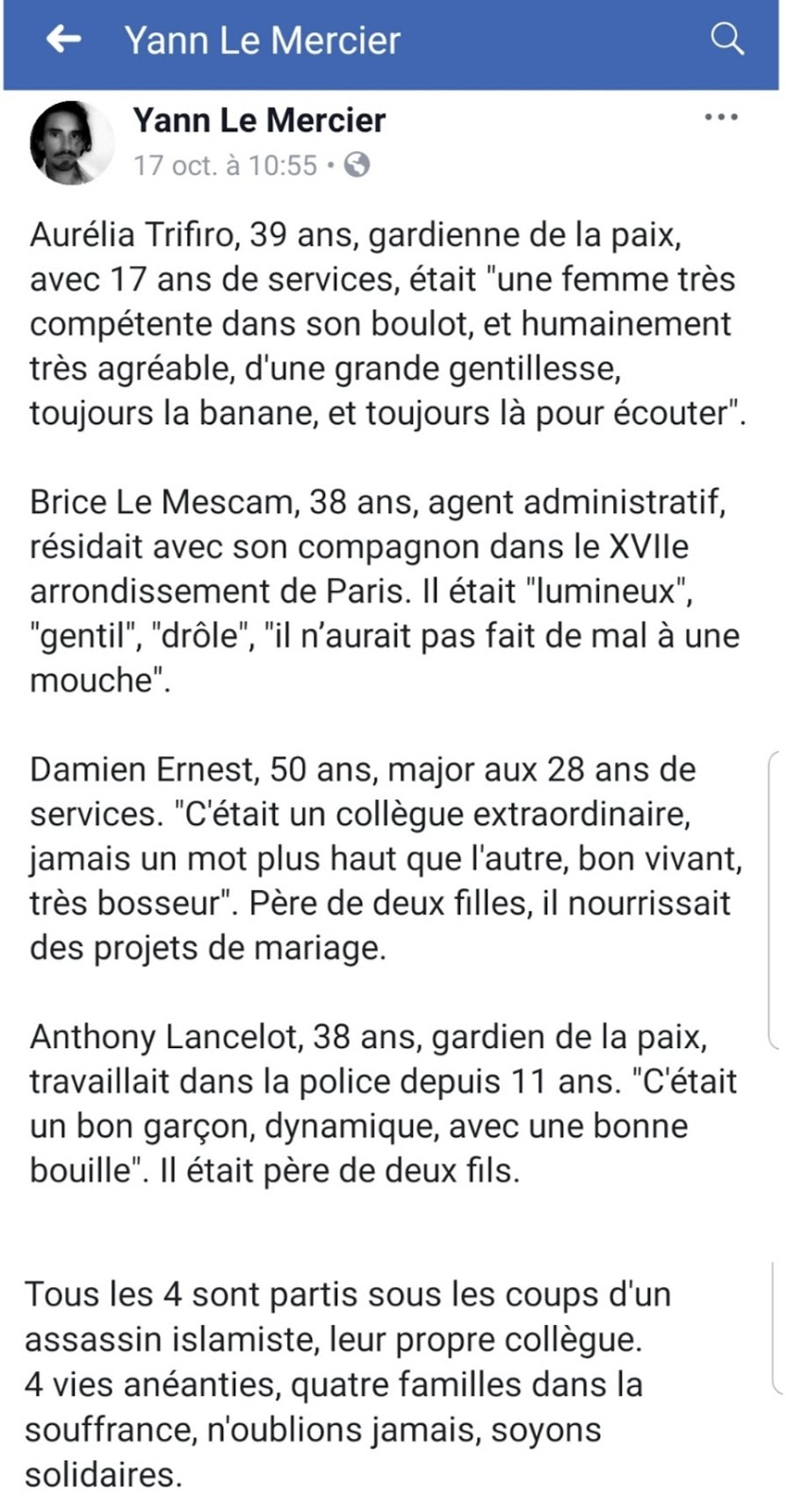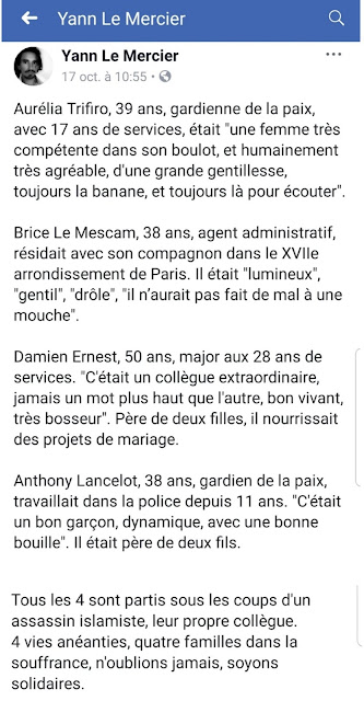 Oui, c’est totalement indécent ces chouinements autour de la voilée, relayés par les médias, au moment même des quatre assassinats de la Préfecture de Police …