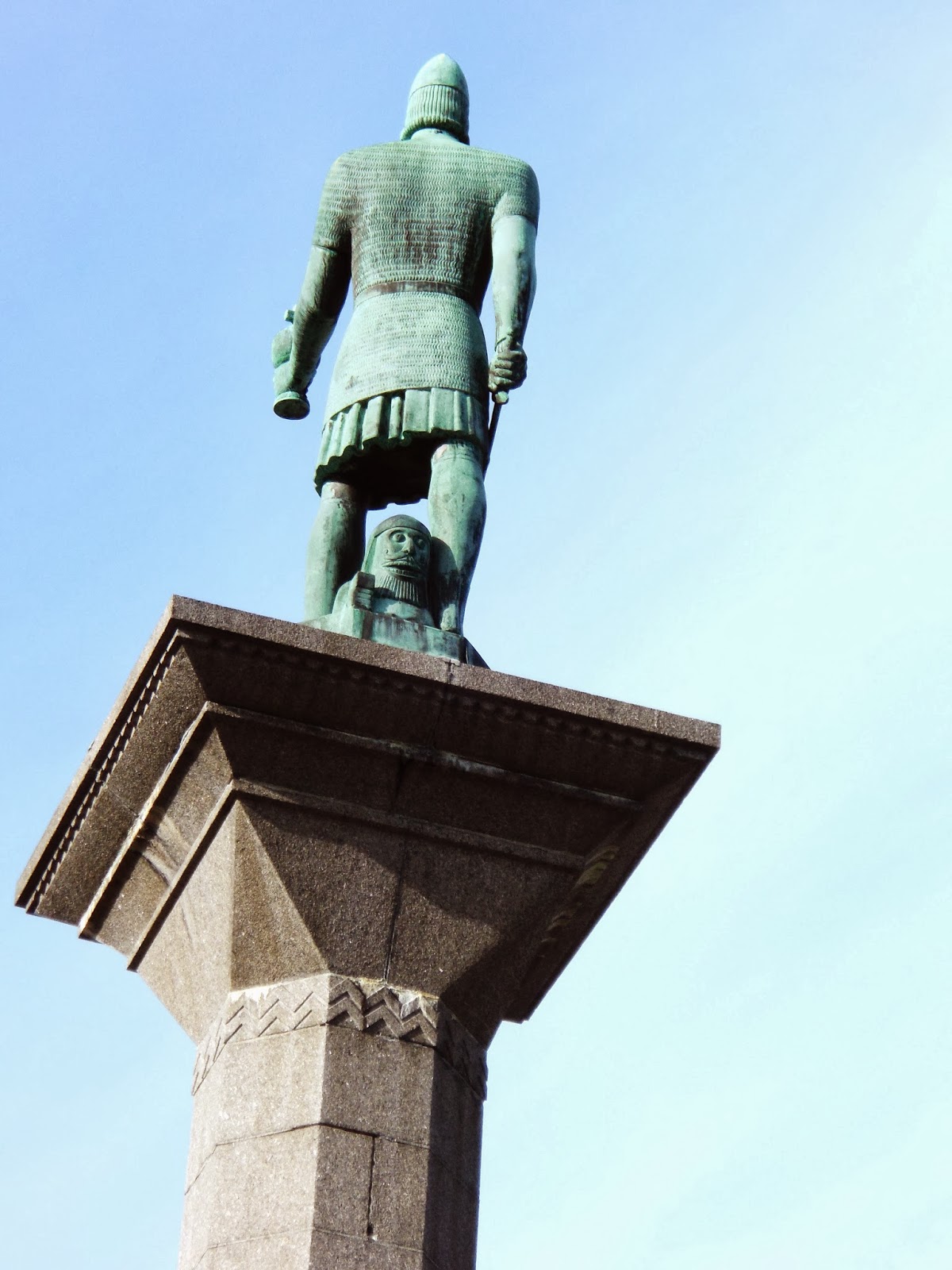 Au pied de la statue d’Olav Tryggvason au centre-ville de Trondheim, en Norvège, repose la tête décapitée de Tormod Kark.