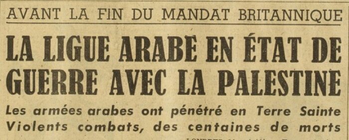 L’article du centenaire explique qu’au soir du 14 mai 1948, le jour de la proclamation de la naissance de l’Etat d’Israël, « les armées arabes ont pénétré en Palestine » :