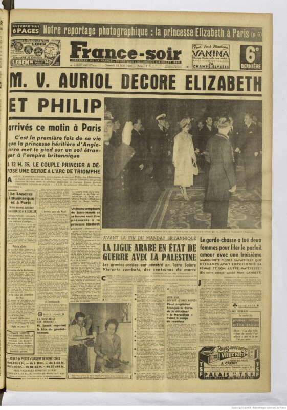 J’aime bien aussi la Une de France soir du 15 mai 1948…