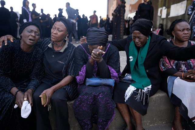 Des femmes réagissent lors d’une marche de solidarité avec les victimes d’une attaque de la veille de Noël à Jos, au Nigéria, le 6 janvier 2024.