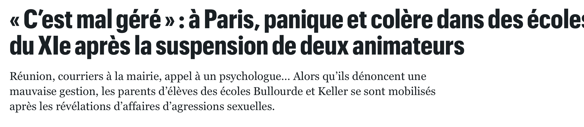Paris : agressions sexuelles dans 2 écoles ; qui choisit et nomme les animateurs de péri-scolaire ?