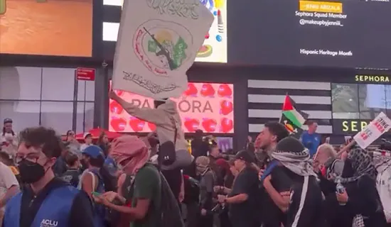 Lors d’une manifestation à New York marquant le deuxième anniversaire des attentats du 7 octobre contre Israël, les manifestants ont brandi les drapeaux du Hamas, de sa branche militaire, les Brigades Izz Al-Din Al-Qassam, et du Hezbollah libanais, scandant : « Mort, mort à Tsahal ! » et « New York, vos mains sont rouges, 700 000 morts ! ». Fatima Mohammed, de Within Our Lifetime, a déclaré que l’attaque du 7 octobre visait à libérer « nos prisonniers ». Une femme déguisée en « Oum Obeida » – en hommage au porte-parole de la branche militaire du Hamas, Abou Obeida – a brandi un drapeau du Hamas et arborait un écusson des Brigades Al-Qassam. Mohammed a mené la foule en scandant : « Nous ne voulons pas de sionistes ici ! ».