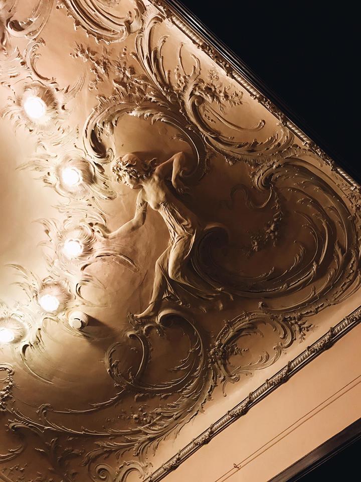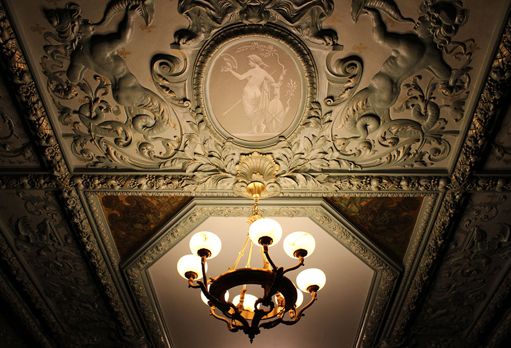 - Oeuvres décoratives incluant bas-reliefs, motifs mythologiques et utilisation de matériaux nobles comme le chêne et le marbre vert