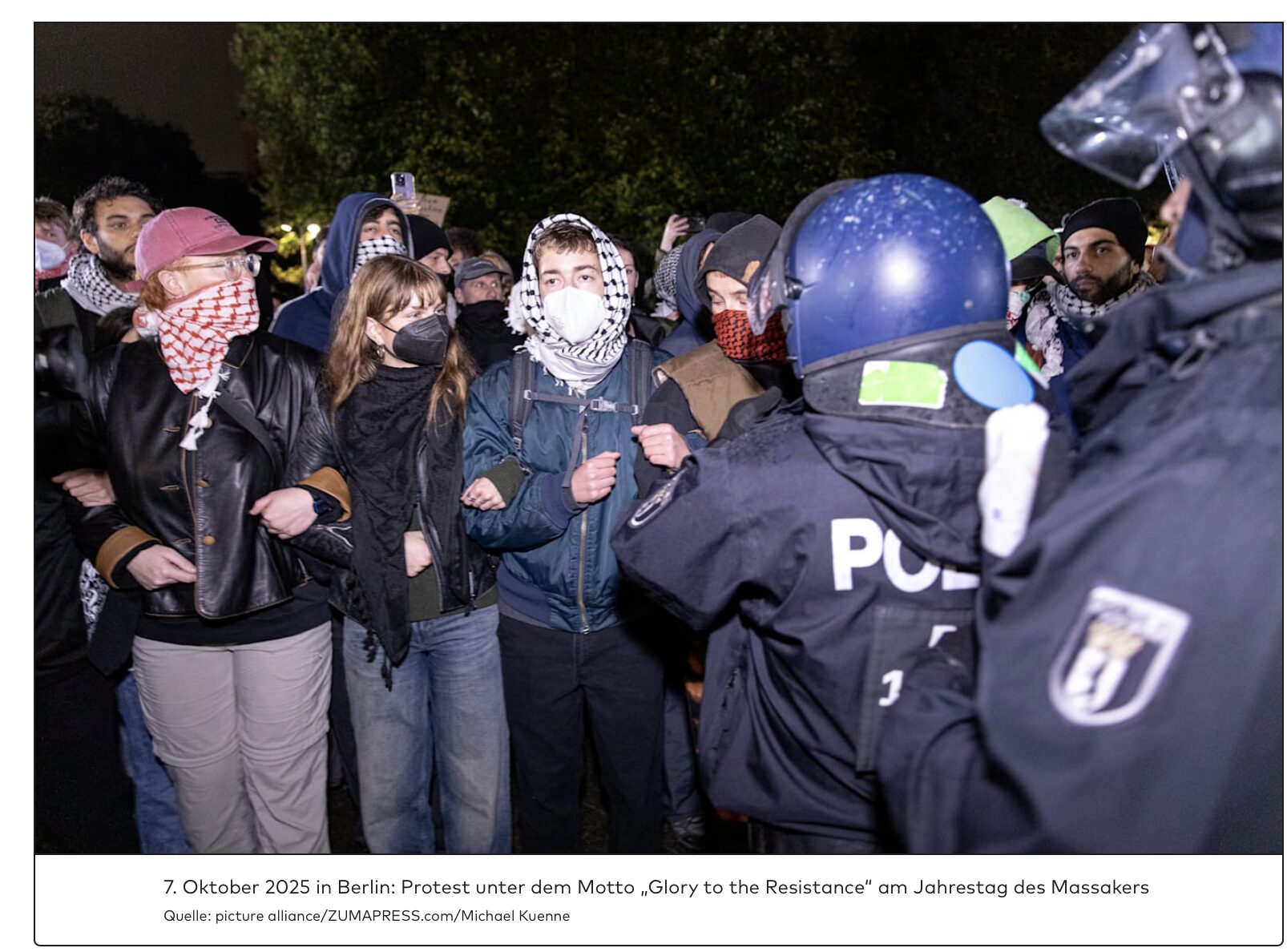 C’était en mars 2025, un an et demi après l’attaque du Hamas contre Israël. Une école du sud-ouest. Lycée. Milieu de petite ville. Peut-être quelques migrants de plus qu’en moyenne. Au total, quelque 150 élèves, tous autour des 15 ou 16 ans. Deux adolescentes biographiquement allemandes attirent mon attention. L’une porte le keffieh autour du cou, plus un t-shirt Che-Guevara. L’autre fouille dans son sac-à-dos, puis en retire également une foulard Pali qu’elle se met autour du cou. En règle générale, c’est l’inverse : les élèves portant le keffieh y renoncent plutôt quand elles apparaissent chez moi pour mon exposé. Ces deux-là ont au contraire mis le keffieh, pour me le montrer.