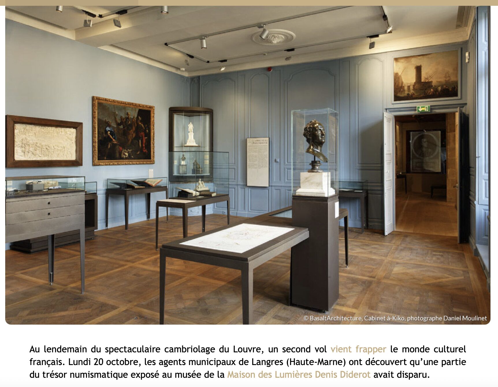 Non je ne charrie pas. Non, je n’exagère pas. Un second musée dévalisé de ses monnaies d’or et d’argent le lendemain de l’attaque du Louvre, ça dit tout de l’abandon dans lequel se trouve la France, de l’abandon -délibéré ?- de nos trésors, des vestiges de notre histoire.