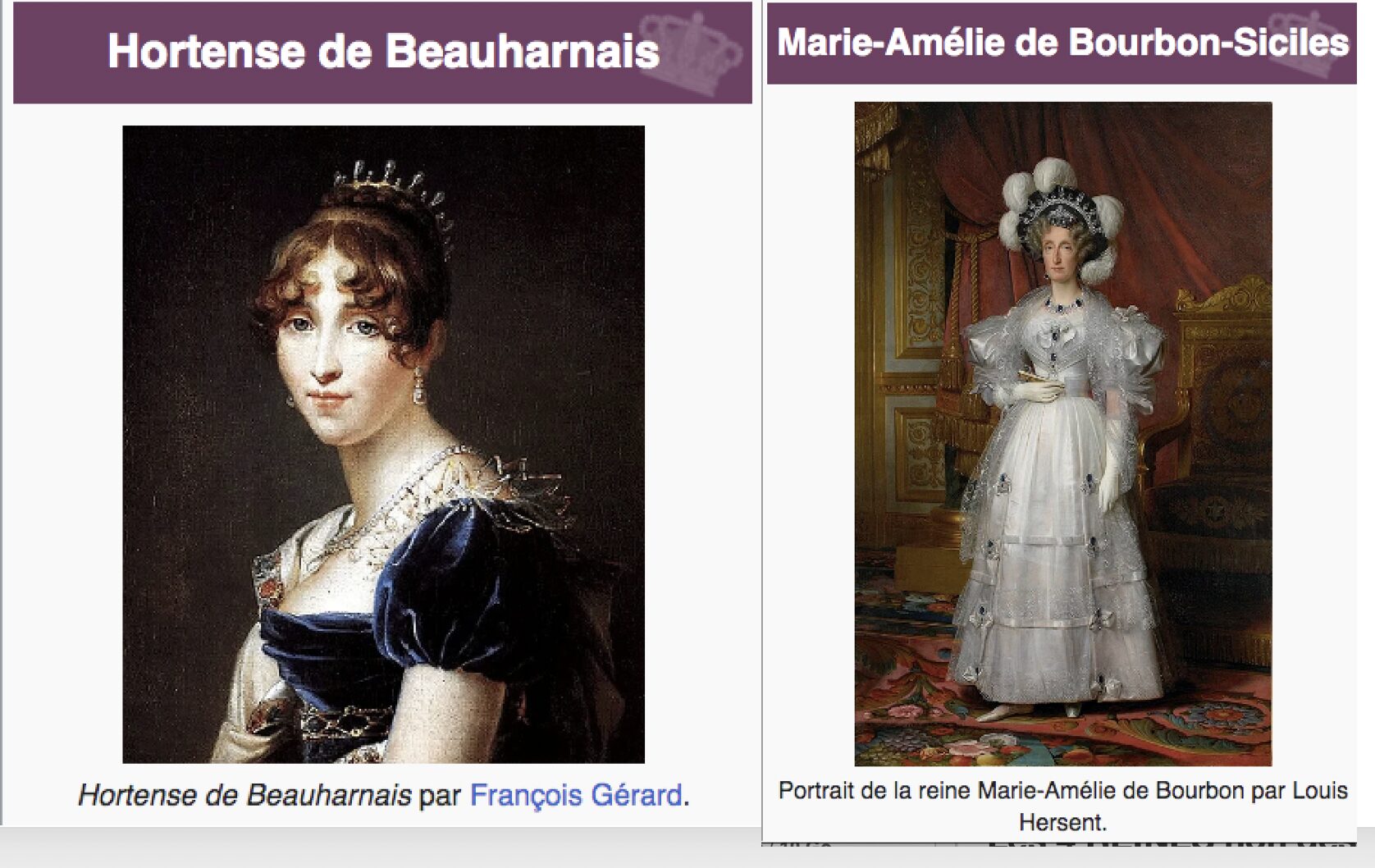 Certes mon espoir est un peu fou mais possible puisqu’il repose sur le fait que ce vol puisse être, en fait, le résultat d’une commande d’un homme immensément riche souhaitant avoir pour lui seul ces trésors (ce qui s’est déjà vu pour des oeuvres de la peinture française voire mondiale ) afin de pouvoir regarder voire caresser de ses seules mains, en son domaine à l’abri, en une propriété quelque part… peut-être dans Paris même ou plutôt à l’autre bout de la planète, de tels joyaux historiques portés et donc touchés par les Reines Marie-Amélie ou Hortense ou encore Marie-Louise voire par l’Impératrice Eugénie (1) !