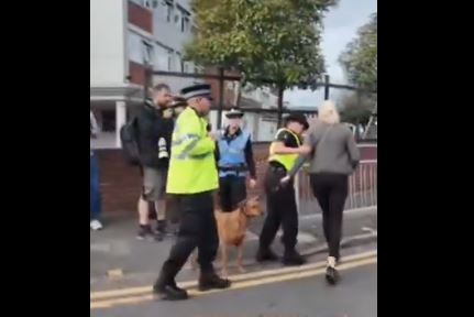 BREAKING – UK police are now telling dog owners where they can walk their pets, stating dogs are offensive to the Muslim population, with this woman ordered off her own street because Muslims were protesting nearby. pic.twitter.com/MHwBF8IAUl