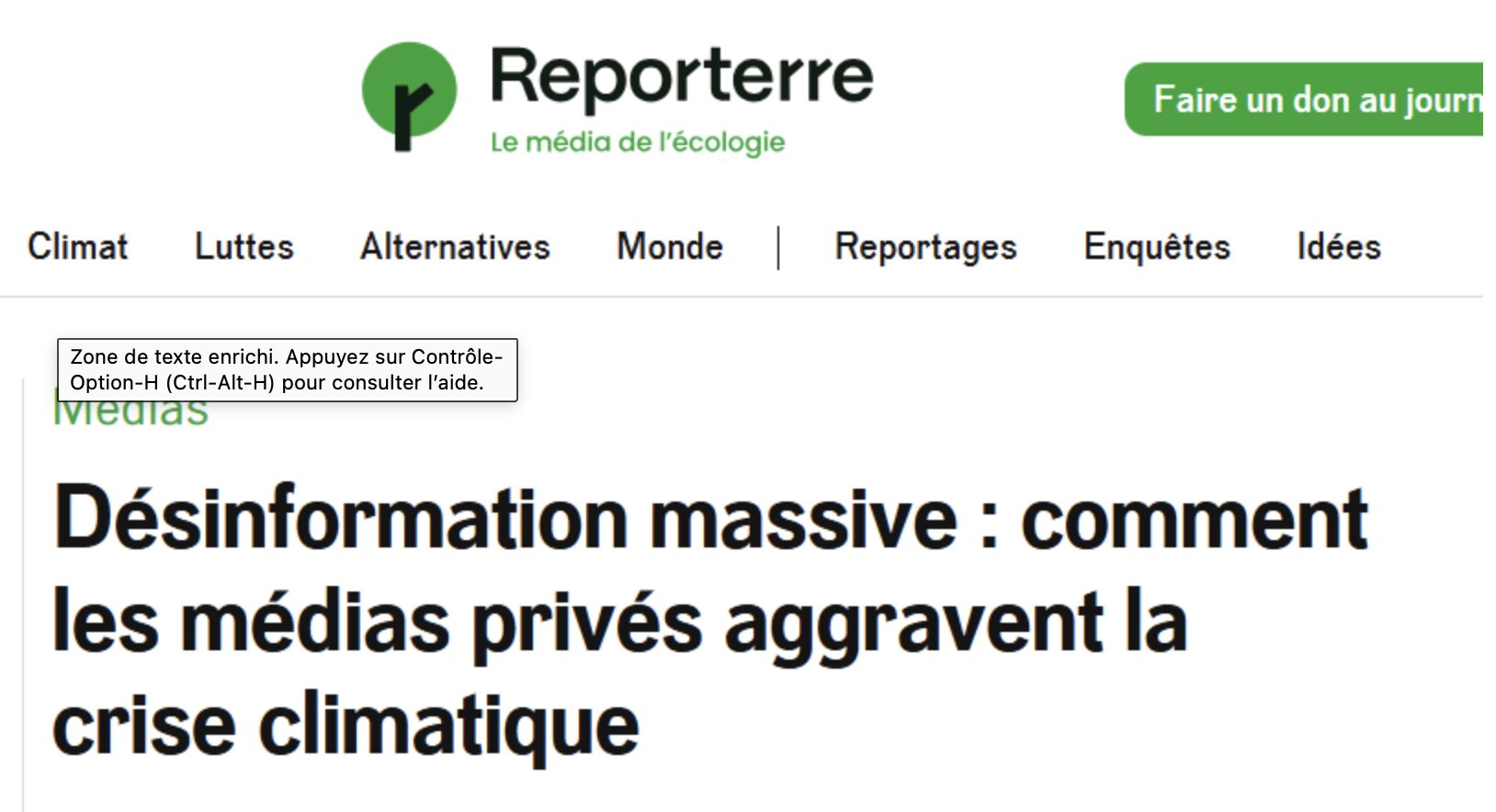 J’en veux pour preuve un article de « Reporterre », militant actif de la cause écolo :