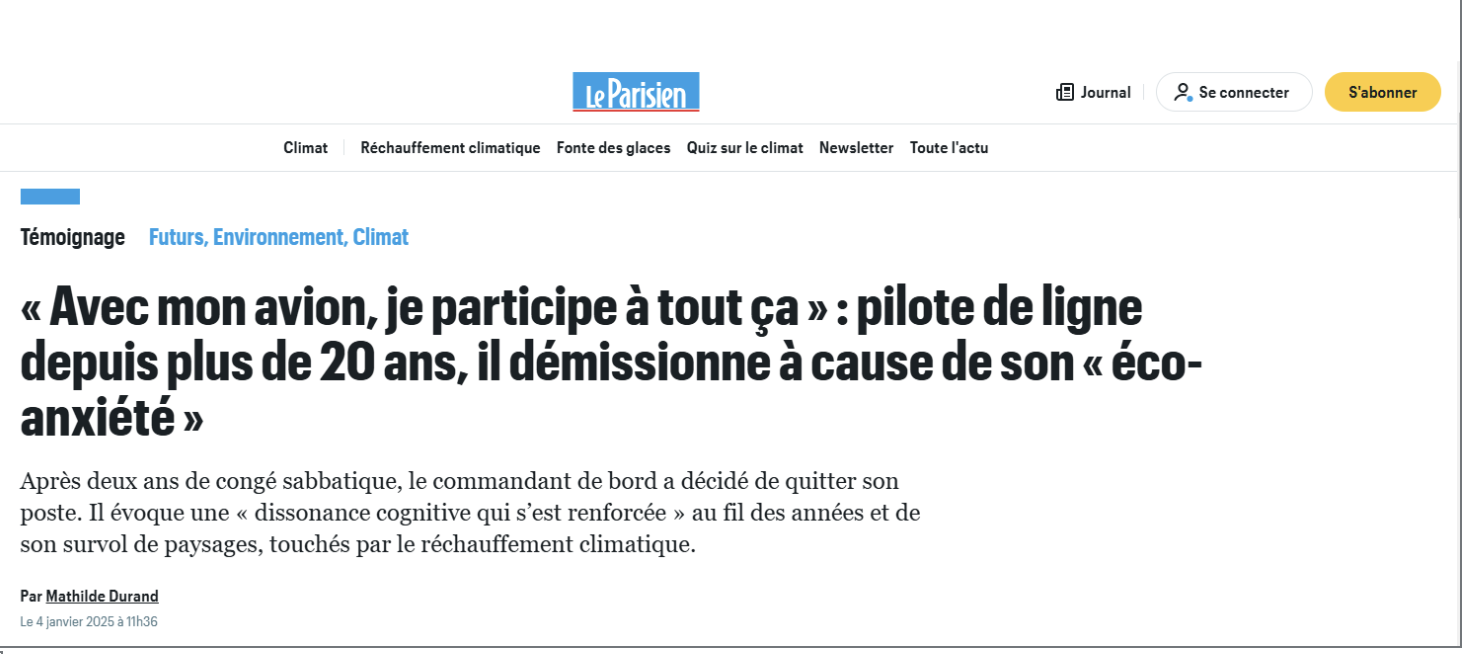 J’imagine très bien le mécanisme intellectuel aboutissant à cette courageuse décision : « Si tous les pilotes faisaient comme moi, il n’y aurait plus de transport aérien, donc plus de pollution ! ».