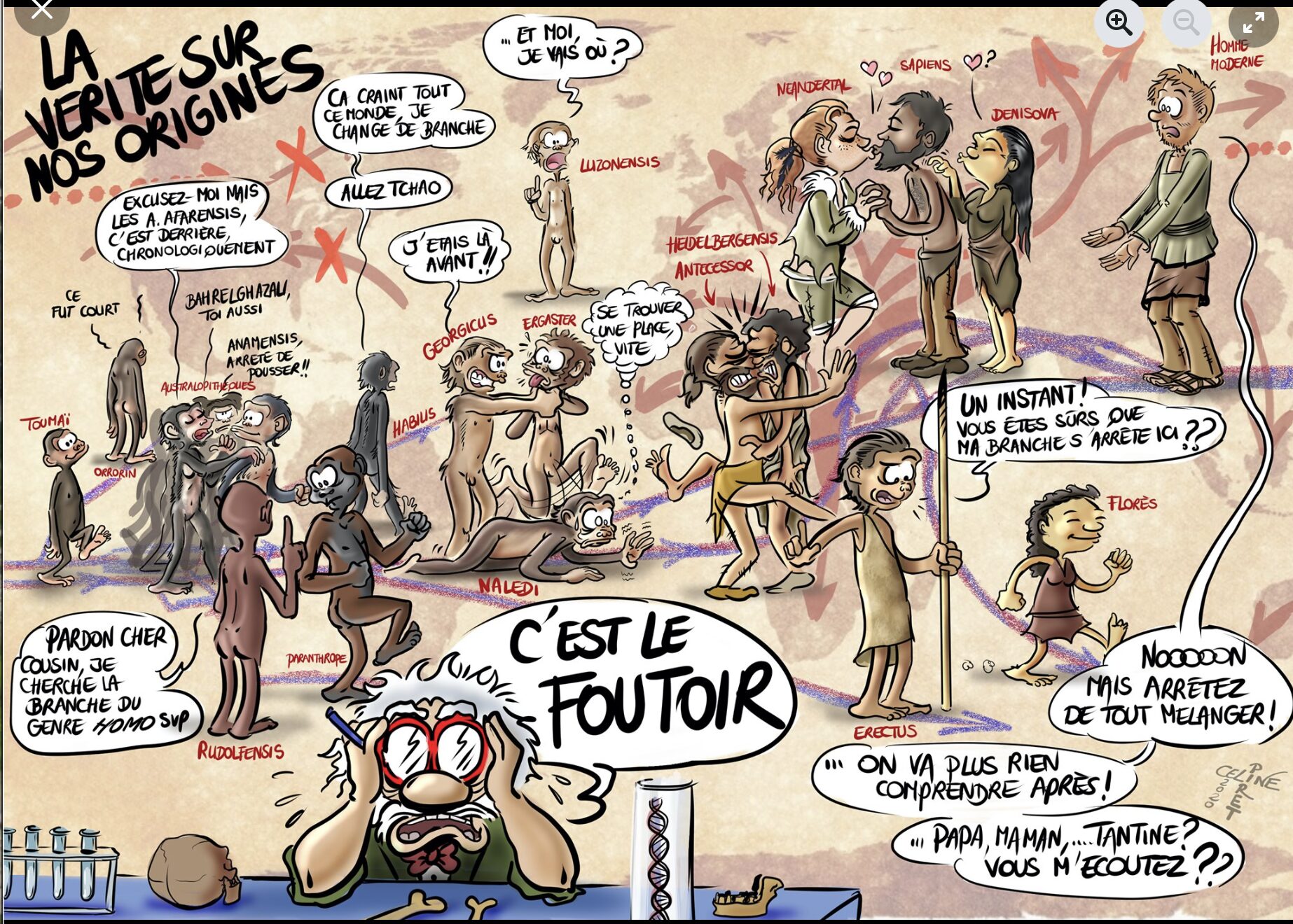C’est donc clair, l’Australopithèque par une de ses nombreuses branches (A. anamensis, A. africanus, A. afarensis, A. garhi, A. sediba, A. barelghazali et possiblement A. boisei, A. robustus), n’était au mieux qu’un lointain cousin et non pas un ancêtre en ligne directe.