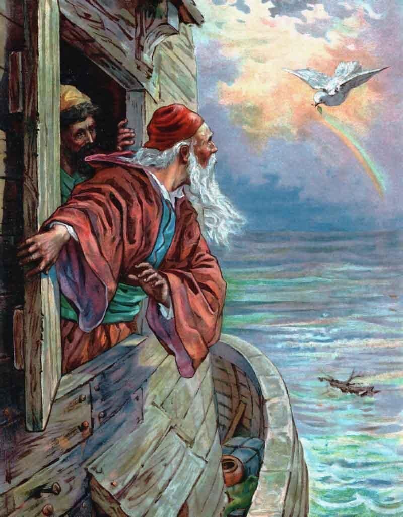 Le rameau d’olivier se réfère principalement au récit de Noé dans le livre de la Genèse, où une colombe revient avec un rameau d’olivier dans le bec, signifiant la fin du déluge et le retour de la vie sur terre. Cet événement fait du rameau d’olivier un symbole biblique de paix, de réconciliation et d’espoir.