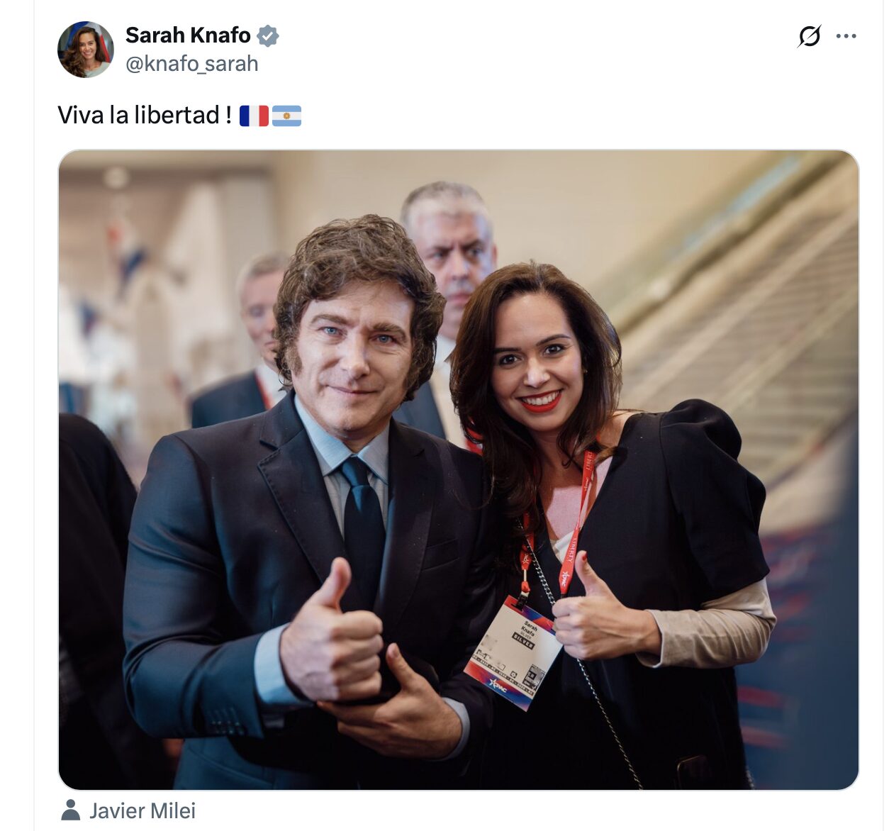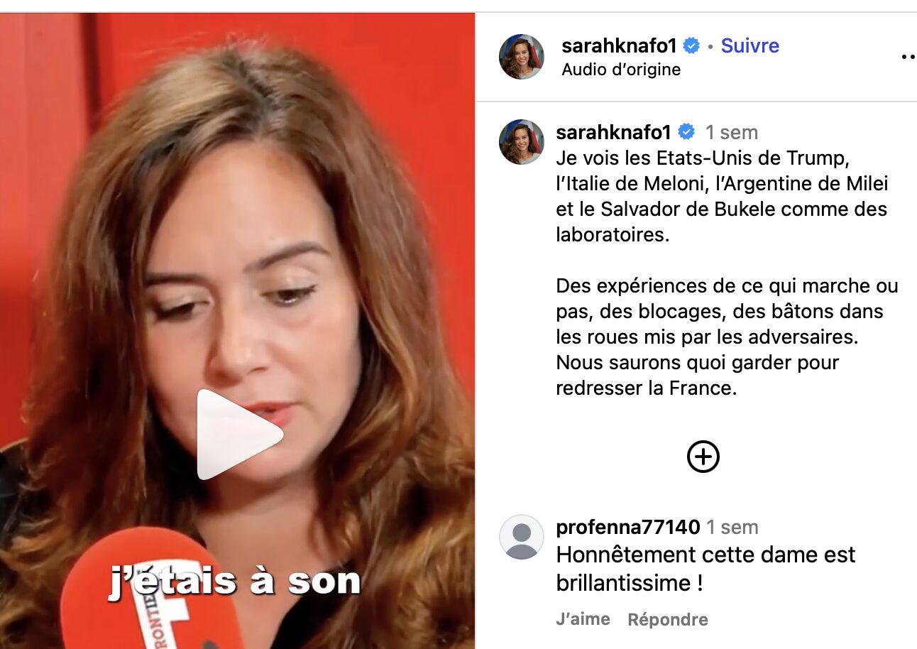Tiens, comme c’est étrange, en France, c’est Sarah Knafo qui porte les mêmes priorités de réforme que Milei…