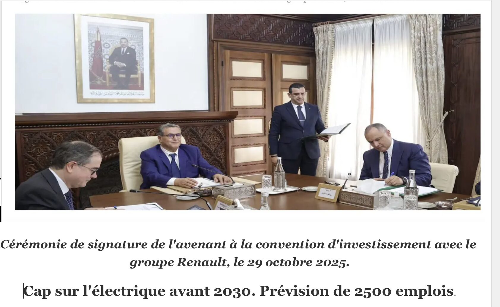 Signature au Maroc de l’avenant à la convention d’investissement avec le groupe Renault, le 29 octobre 2025