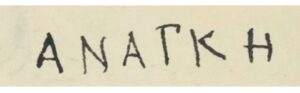 C’est dans Notre-Dame de Paris, encore, que Hugo, l’amoureux de la France et de notre histoire, a évoqué ce mot grec gravé depuis le Moyen-Age (prononciation en français ana-nkè)
