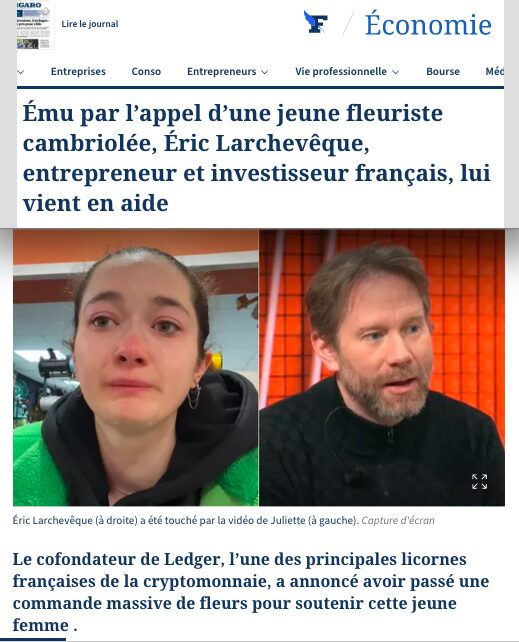 Veillons donc à rester dans l’authenticité bien française, des sentiments de générosité au profit de « notre » si touchante fleuriste et de « notre » si malheureux sans abri ! Tous deux ont touché toute la France…