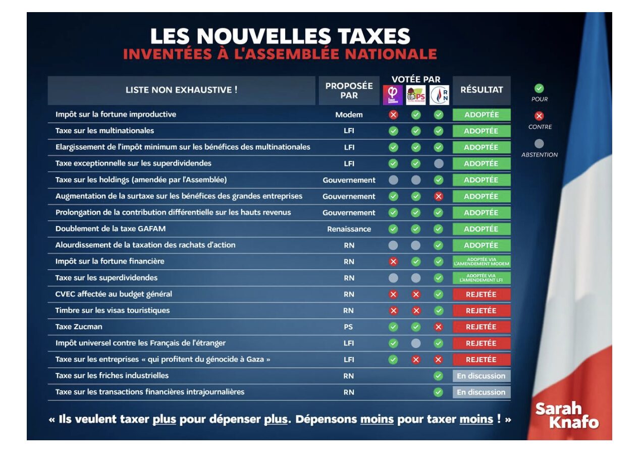 👊 Assez de taxes. 26 milliards d’impôts de plus, c’est 26 milliards de trop. La seule issue, c’est la baisse des dépenses, pour pouvoir enfin baisser massivement les impôts.