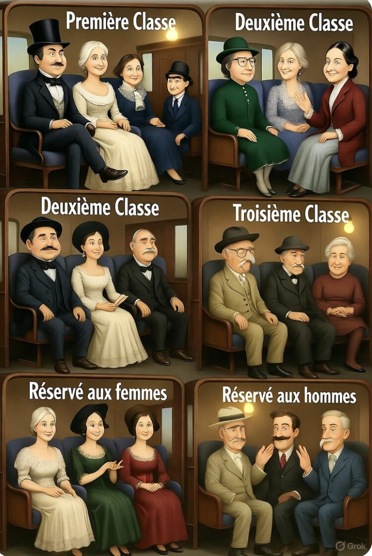 Retour vers le futur ! Alors, mesdames, messieurs, à vos tickets ! Choisissez bien votre wagon, et surtout, n’oubliez pas : l’égalité, c’est quand tout le monde a sa place… mais pas dans le même train. Allez, en voiture, direction l’absurde !