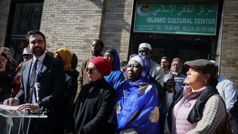 Zohran Mamdani premier maire musulman de New York, en conférence de presse devant une mosquée