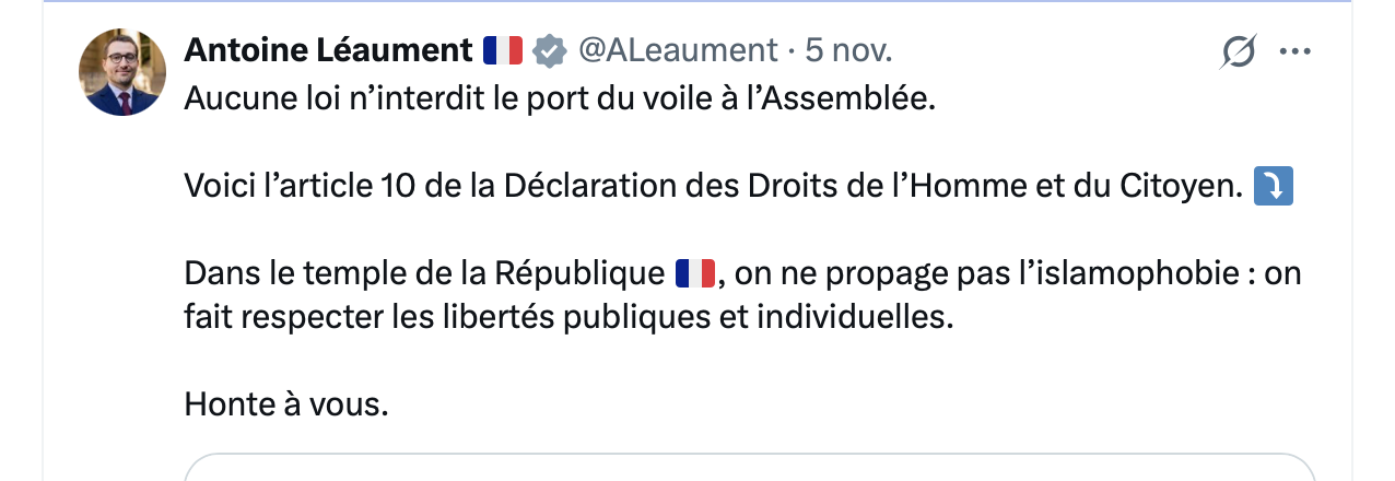 Elle se contente d’un message symbolique sans faire expulser les voilées mais c’est déjà trop, elle s’en prend plein la tronche sur twitter. Il est vrai qu’elle est femme et juive, ça fait beaucoup pour les antisémites. L’inénarrable insoumis Léaumont en tête !