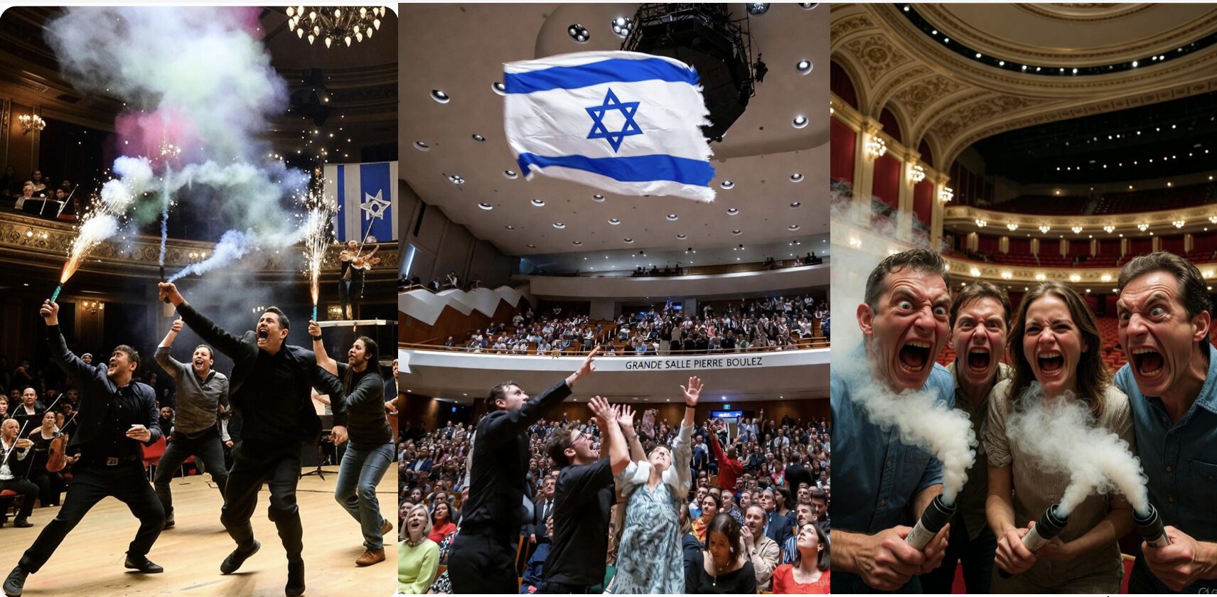 De prétendus « spectateurs » infiltrés dans la salle ont tenté, à trois reprises, d’interrompre le concert donné par l’orchestre philharmonique d’Israël.