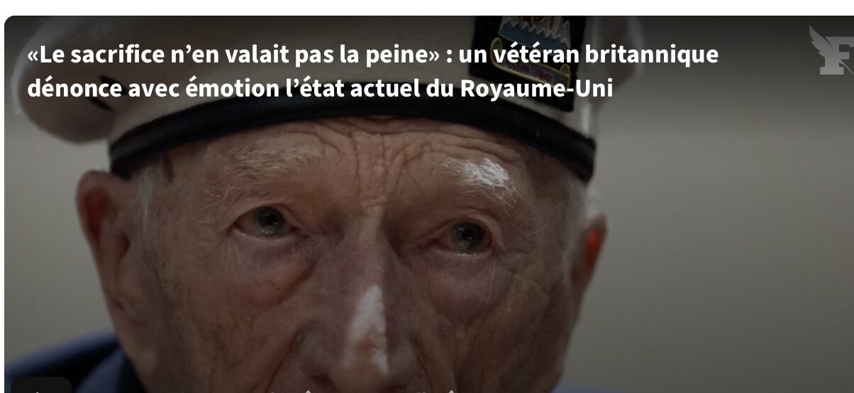 «Le sacrifice n’en valait pas la peine» : un vétéran britannique de la Seconde Guerre mondiale dénonce avec émotion l’état du Royaume-Uni