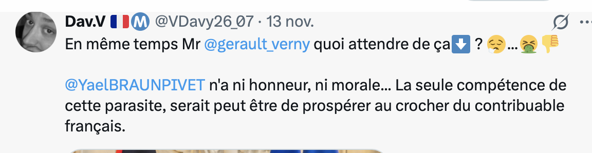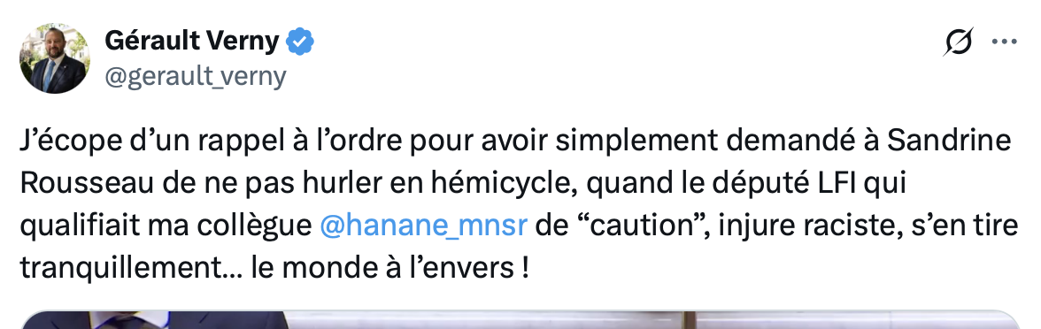Et elle ne s’est pas arrêtée là, la Yael-Brunet. C’est successivement à 3 députés qu’elle a adressé des rappels à l’ordre. Après le député UDR Gérault Verny, Laurent Jacobelli et Kevin Pfeffer ont été tancés et accusés de sexisme, toujours à l’encontre de la pintade Rousseau. Il faut dire que les 2 derniers sont des députés RN, tout est bon pour leur interdire de prendre la parole. Ils ont reçu une lettre officielle de Maman Yael-Brunet pour intimer l’ordre aux galopins de se tenir bien. Ils avaient raillé l’hystérie de la Rousseau : « Sandrine, prends un cachet ! Sandrine, tu vas craquer ! ». « Elle est complètement dingue » « Elle est complètement siphonnée » . Il faut reconnaître que partout où elle passe la Rousseau suscite des quolibets et elle les cherche Mais Yael-Brunet a choisi son camp. On s’en doutait mais ça va mieux en le disant.