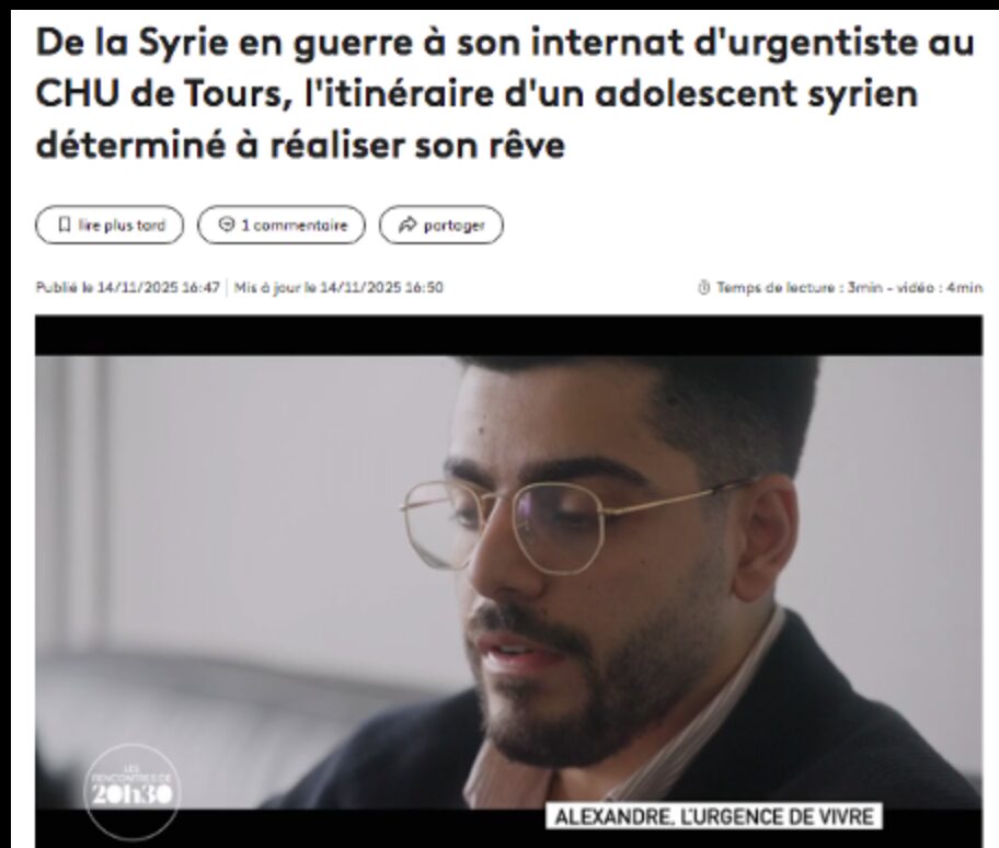 En effet, comme le précise le site de France Info… : depuis cet automne, Alexandre a débuté son internat d’urgentiste au CHU de Tours et s’est offert le luxe de remporter, le 22 mai 2025, le concours d’éloquence Eloquentia, dix ans après avoir appris le français. »
