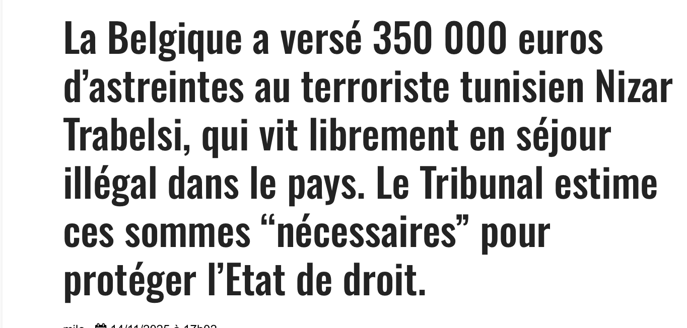 En 2013, la Belgique avait extradé M. Trabelsi vers les États-Unis malgré l’interdiction de la Cour européenne des droits de l’homme. Comme le pays a refusé de le ramener, il a été contraint de verser des astreintes, qui ont atteint le montant maximal de 300 000 euros, auxquels s’ajoutent 50 000 euros de frais de procédure. Après de longues années de bataille judiciaire, M. Trabelsi est finalement revenu cet été en Belgique.