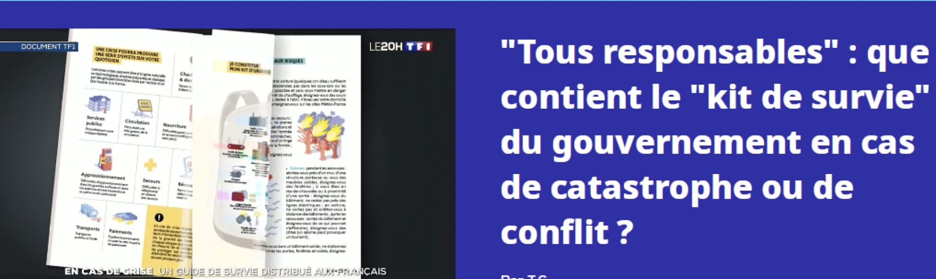 Et hop ! Sa fameuse brochure de survie… pardon, il convient dans notre désespérante et indigeste macronie d’utiliser les mots venant d’ailleurs -à l’image des terroristes qui viennent aussi d’ailleurs- : plutôt que le mot brochure, TF1 a préféré parler de « kit »…quitte à se ridiculiser puisque ce mot anglais introduit en France, selon Le Petit Robert, en 1958 signifiait alors « boîte à outils » ! Et voilà une idée… « qu’elle est bonne ! » a dû se dire le président à celui qui la lui a proposée tout en ajoutant dans sa petite tête :