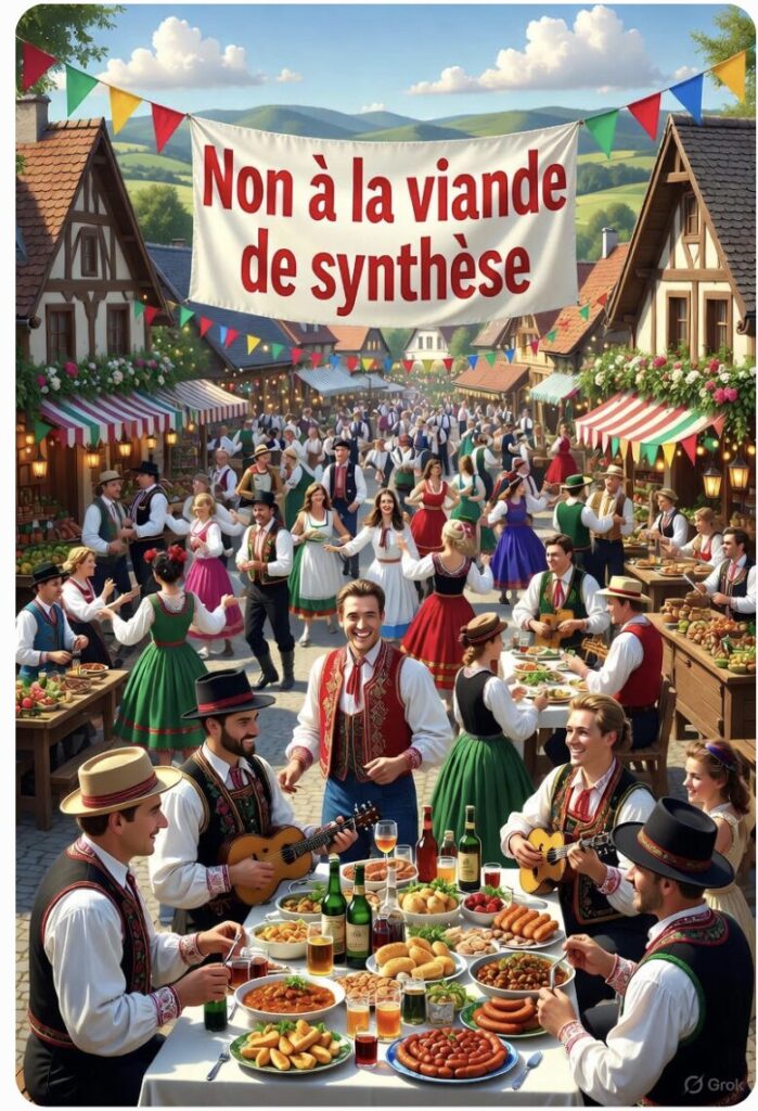 Objectif officiel ? Sauver la planète, bien sûr. Parce que, comme chacun sait, il est urgent de remplacer les ruminants qui broutent de l’herbe et donc détruisent la diversité, polluent les sols et les rivières, changent le CO2 de la planète… L’UE a trouvé le remplaçant idéal, un laboratoire qui produit des steaks végétaux en consommant de l’électricité pour faire pousser des cellules dans du sérum foetal de veau. (oui, vous avez bien lu : la viande « vegan » qui a besoin… de veau). Cela s’appelle respect de la nature pour la Der Leyen et ses comparses, dont nos politicards pas élus mais nommés à Bruxelles pour décider notre place…