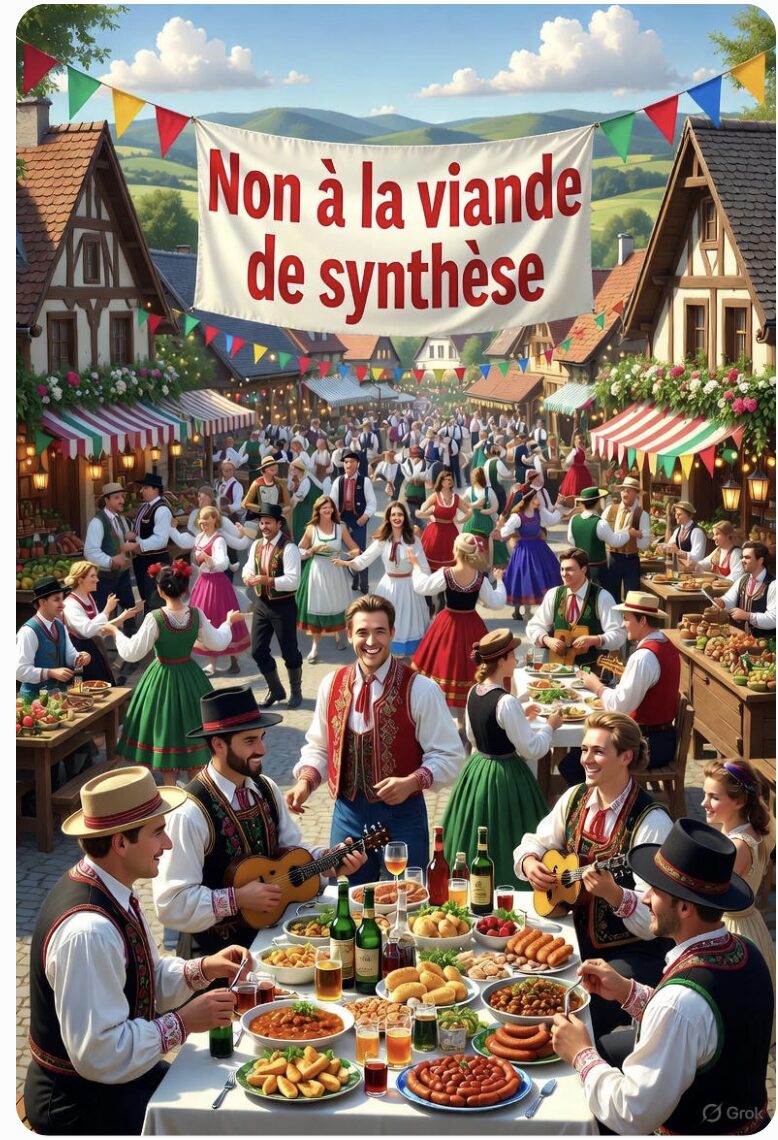 Et oui, arrive la Hongrie. Ce petit pays de 9,7 millions d’habitants qui, tel Astérix face à César, a mis son veto avec la grâce d’un Viktor Orbán disant « non merci, on garde nos vrais cochons ». Un seul pays, un seul vote (le cauchemar de Der Leyen est arrivé ! et tout le beau projet de viande en éprouvette part à la poubelle (recyclable, évidemment, on est écolos ou on ne l’est pas).