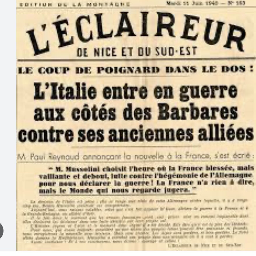 Oui, l’UE veut la guerre, et Macron trahit l’amitié franco-russe pour ses intérêts destructeurs de notre pays. Cela me rappelle « le coup de poignard » donné par Mussolini au pays frère qu’était la France, le 10 juin 1940, pour de basses raisons géopolitiques, contre l’avis du maréchal Badoglio.