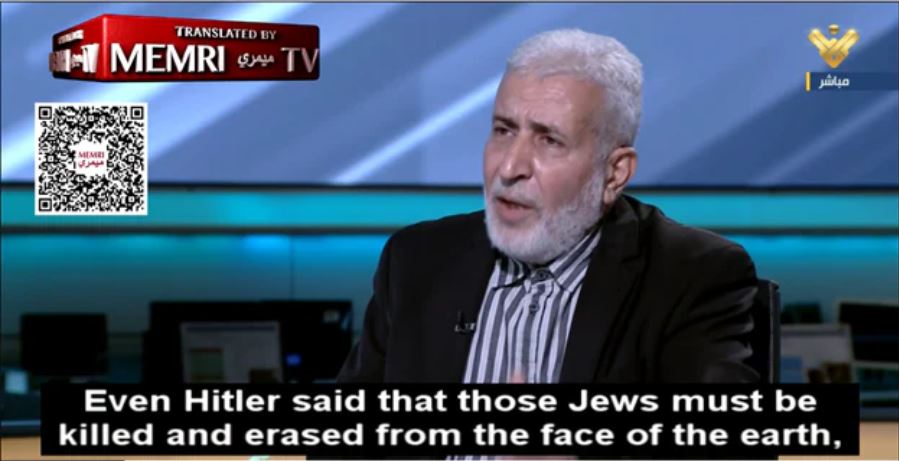 Abou Samer Moussa, responsable du djihad islamique au Liban, a déclaré sur Hezbollah TV : » Même Hitler a dit que les Juifs devaient être effacés de la surface de la Terre »