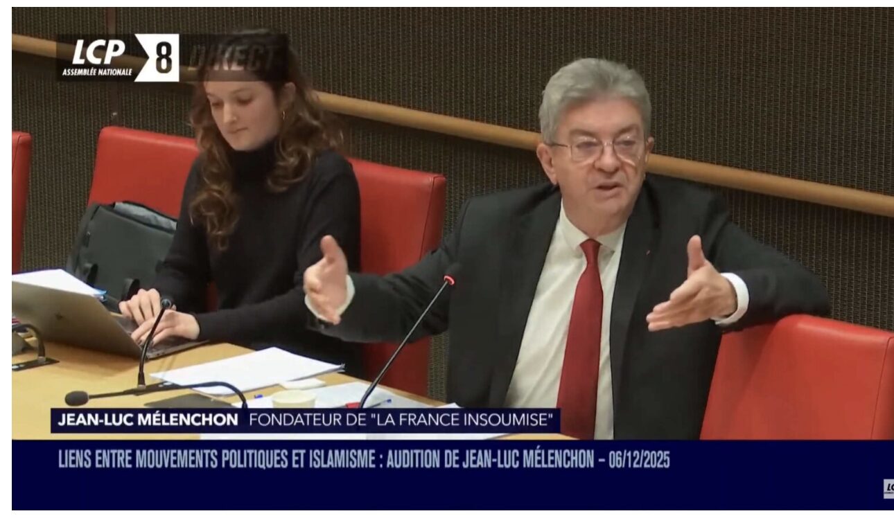 Vient le moment où la commission lui rappelle ses prises de position de 2010 sur le voile « signe de soumission ». Conception qui était encore la sienne en 2015. Mais 10 ans plus tard, en 2025, Mélenchon a déclaré qu’interdire le voile aux mineures serait une violence, un mépris. La commission lui demande comment il explique cette évolution et s’il est toujours d’accord avec la loi de 2004 qui interdit le voile dans le milieu scolaire (collèges et lycées). Et Mélenchon de répondre avec un cynisme et une mauvaise foi incroyables. Annonçant tout de go que sa mère, sa sœur et sa grand-mère, toutes catholiques, portaient un voile car cela ne se faisait pas de se promener « en cheveux », donc le voile musulman serait de nature identique. Quelle hypocrisie ! Et le voilà qui ajoute « c’est l’État qui est laïque, pas la rue ». Faux, archi-faux. Je rappelle que la loi de 1905 contient la notion de discrétion dans l’espace public, donc le refus d’affichage de signe religieux ostensibles.
