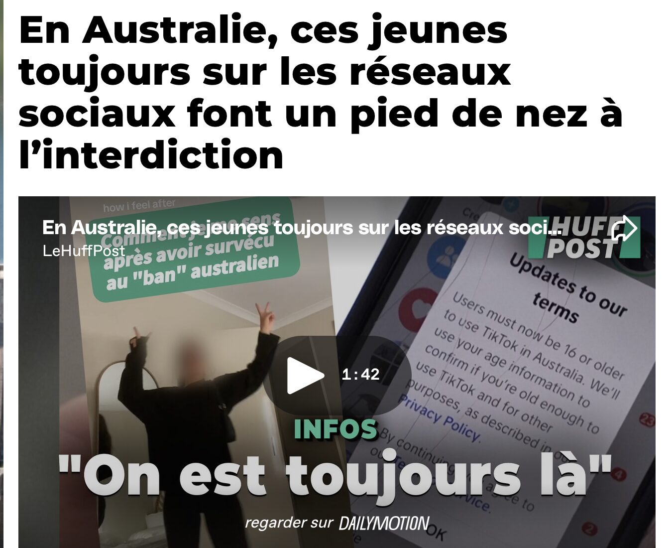 …« face à cette interdiction, vers où se dirigeront les mineurs ? « Vous ne faites pas disparaître le problème, vous ne faites que le déplacer sur d’autres plateformes », explique Tim Levy, directeur de la société de sécurité en ligne Qoria.(…) « Dire aux parents australiens inquiets que tout va bien maintenant est un message très dangereux. »