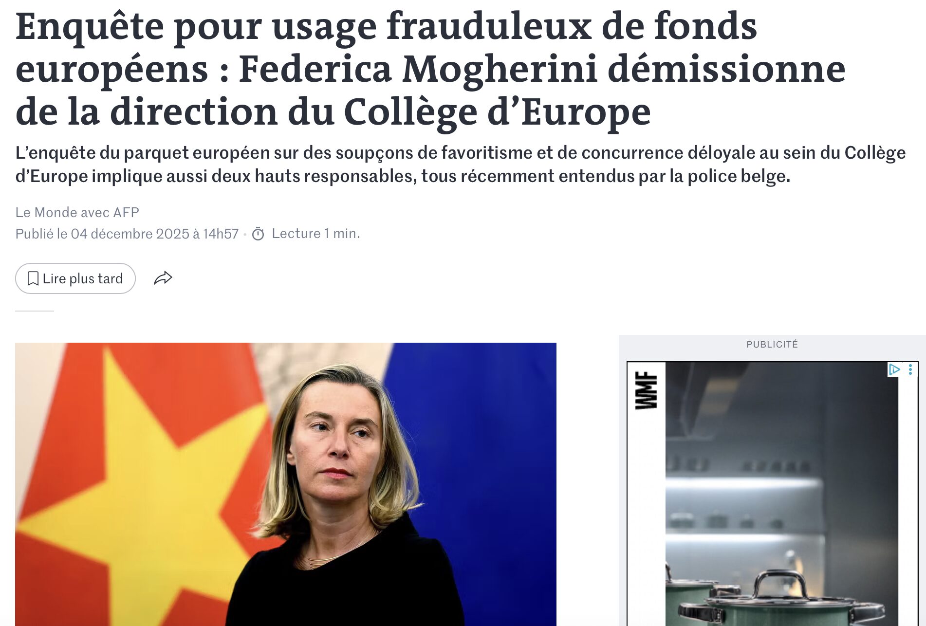 Et le dernier scandale dont on parle : Des figures comme Federica Mogherini, ex-diplomate européen arrêté récemment pour fraude aux fonds UE, posaient avec des leaders du Hamas, devant les photographes illustrant une complaisance scandaleuse.
