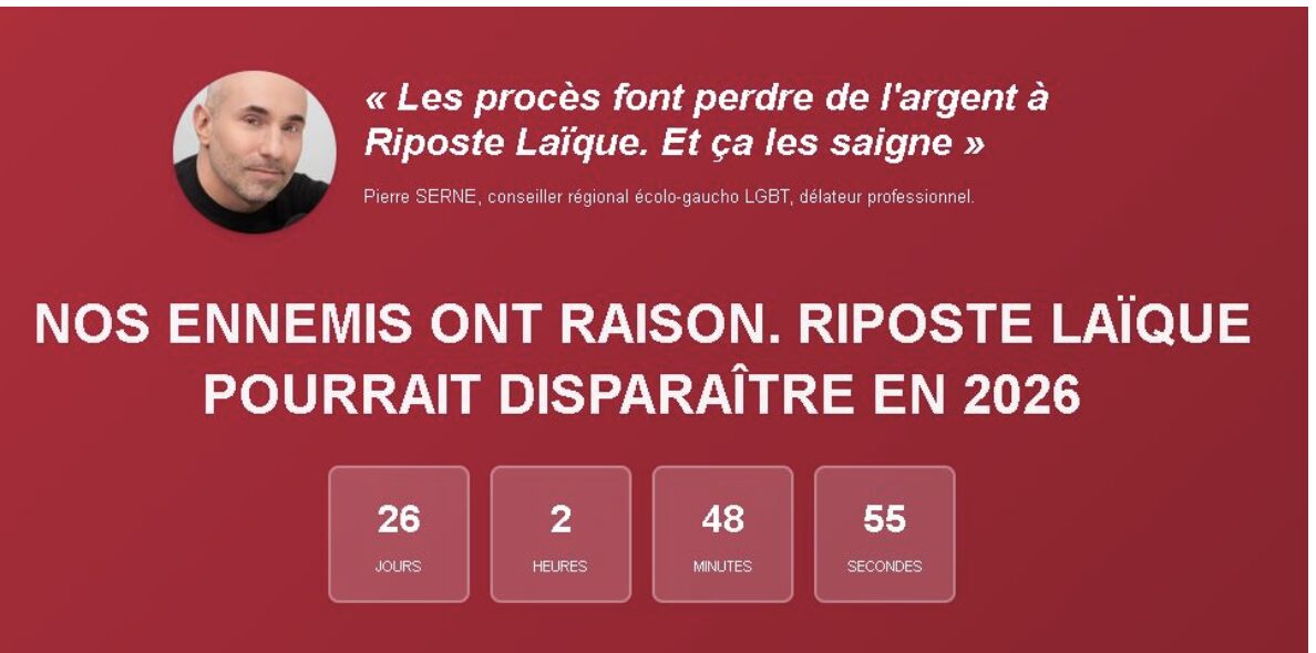 Le site Riposte Laïque est en grand danger. En 2026, quinze procès nous attendaient, nous obligeant à lancer un appel aux dons pour sauver le site. Nous avons donné tous les détails de ce qui s’apparente à un véritable djihad judiciaire.