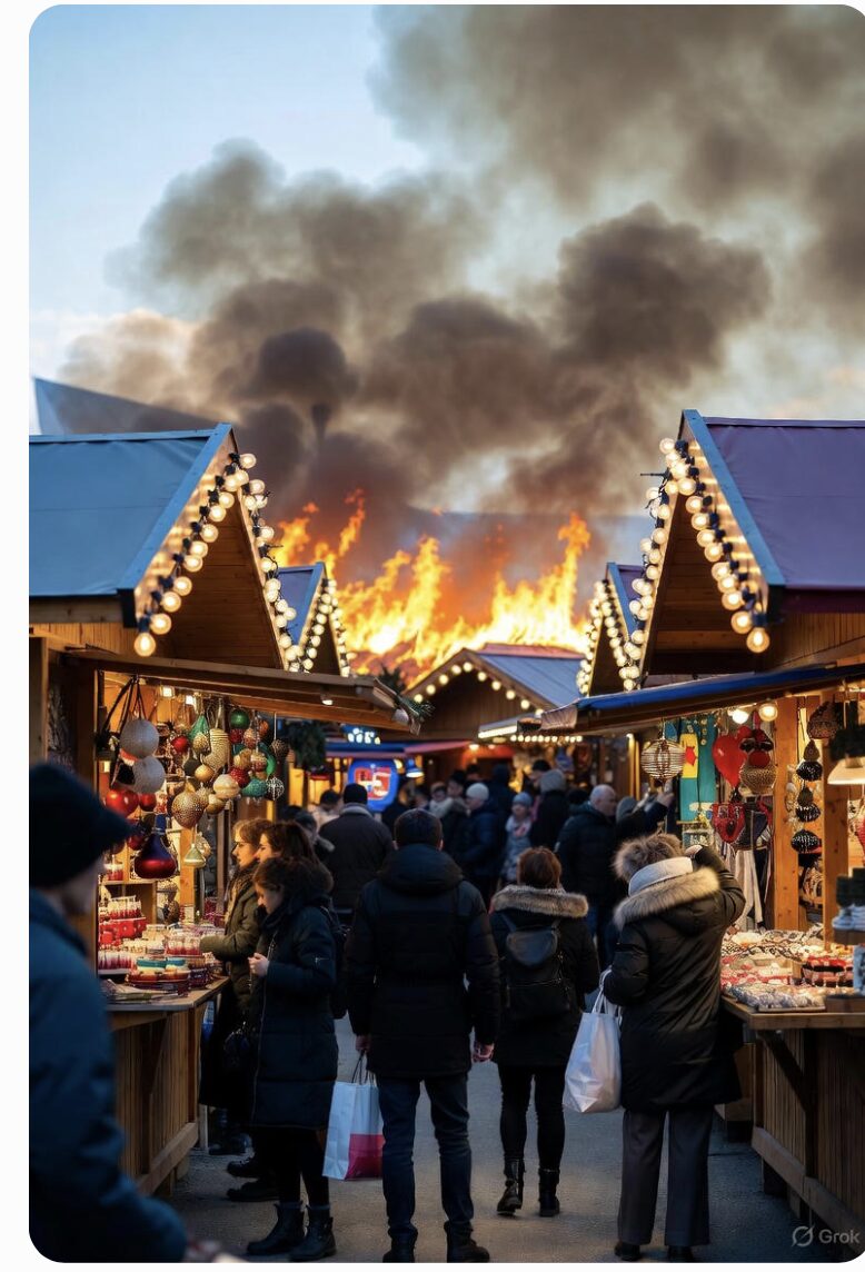 Pourquoi maintenant, en pleine saison festive, au cours de ce qui fut un temps la paix des confiseurs ? Pour crier à l’envahisseur qu’il a raison de détruire nos églises, de tuer nos gosses, de tuer la liberté d’expression avec Charlie ? Pour saper les valeurs chrétiennes et européennes que ces marchés incarnent ? Pour saper notre héritage des Grecs et des Romains qui fêtaient eux aussi le changement de saison, le solstice d’hiver ? Comme le faisaient avant eux les hommes qui fêtaient le retour de la lumière ? C’est aussi, il n’y a pas de hasard, le mois de la lumière chez les juifs avec Hanouka.