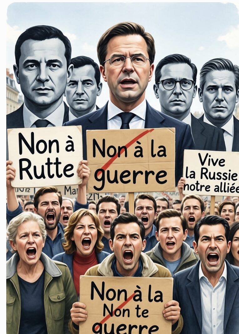 Qui sont les vrais nazis ici ? Zelensky, cette marionnette corrompue, et ses soutiens fanatiques : Macron, Rutte lui-même, Merz et Starmer ! Ces hypocrites, ces incompétents notoires, veulent nous entraîner dans une guerre suicidaire contre la Russie pour masquer leur fiasco total ! Regardez nos pays : endettés jusqu’au cou, économies en ruine, peuples appauvris par leur gestion désastreuse ! Inflation galopante, frontières poreuses, industries délocalisées – et ils osent essayer de nous aveugler avec des fantasmes de menace russe ?