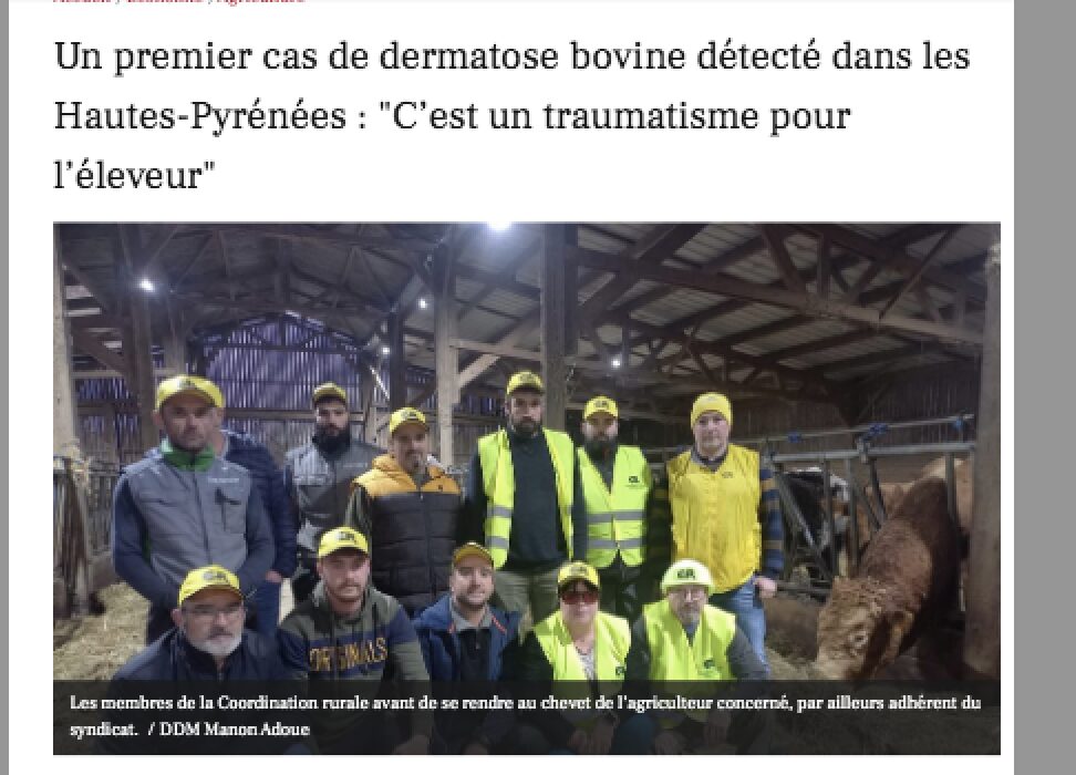 Du côté des éleveurs il n’est pas question d’un abattage de tous les animaux mais de la seule bête malade !!!… Comme le rapporte La Dépêche :
