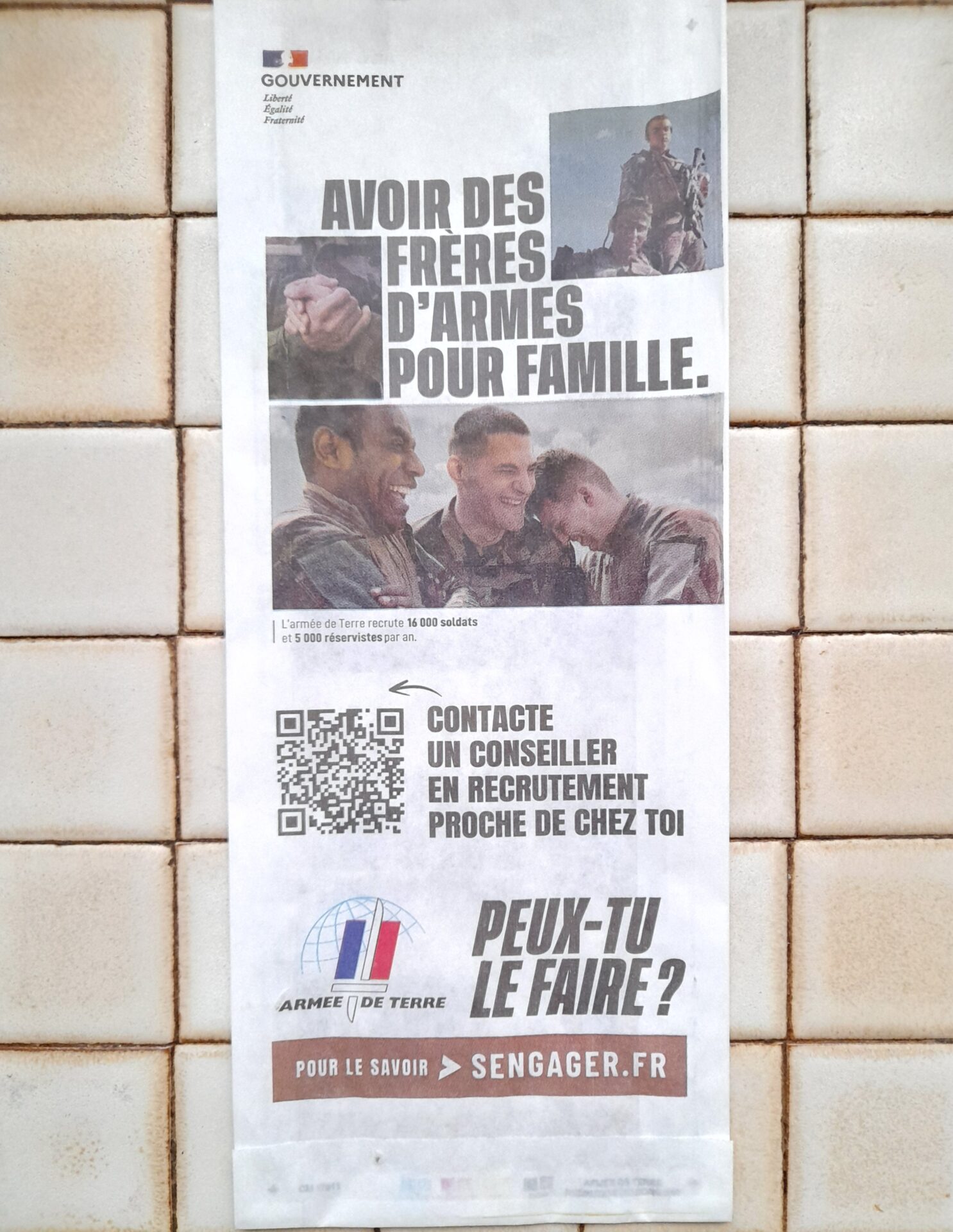 Imaginez vous tous les jours aller chercher votre pain quotidien avec ce rappel lancinant du : 《 Engagez vous, vous verrez du pays ! 》