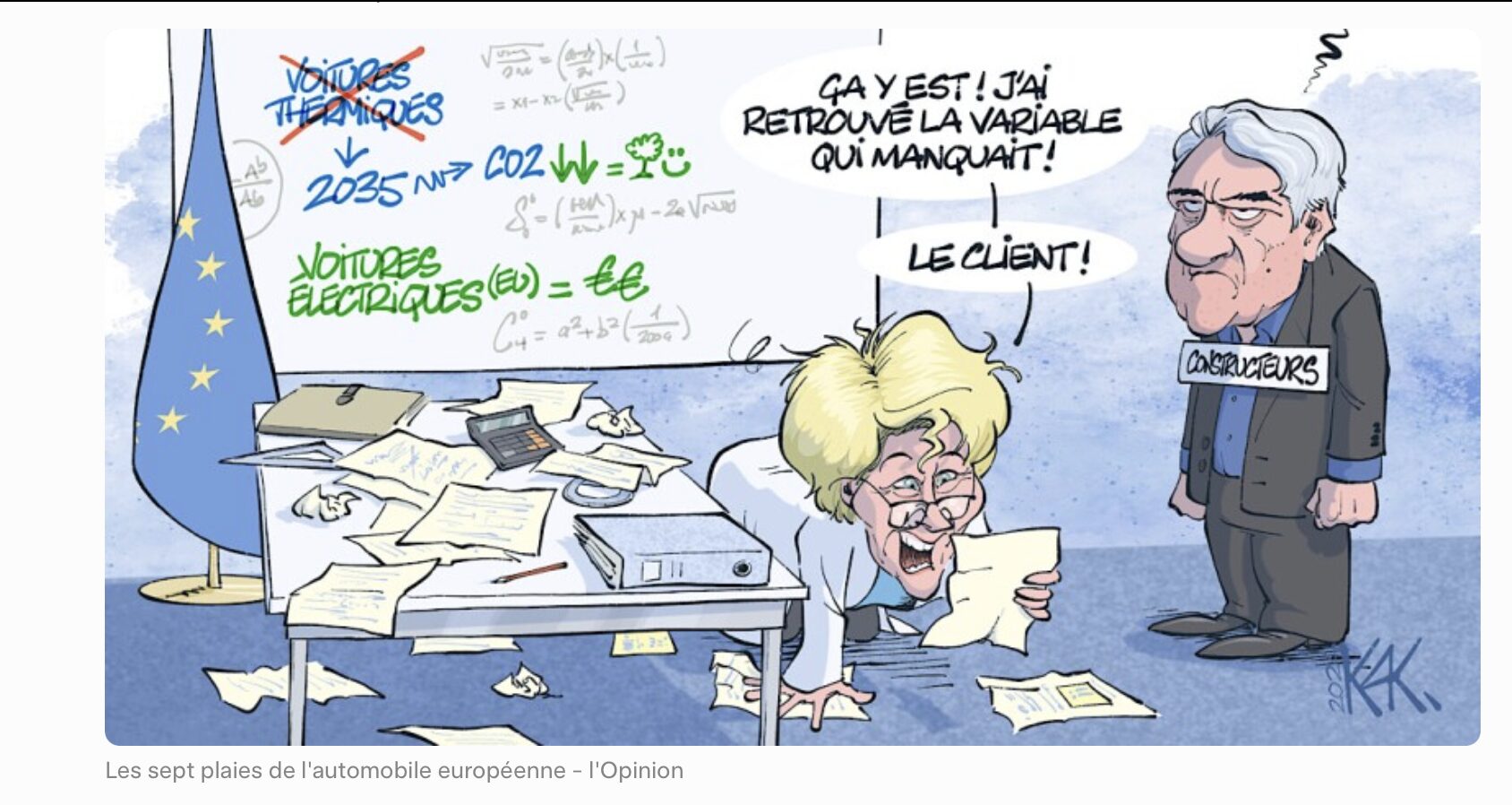 Notre pauvre France, elle, ou plutôt nos dirigeants félons, avec l’Espagne et les pays nordiques… voulaient maintenir l’objectif de 100% zéro émission pour rentabiliser les milliards investis dans l’électrique et protéger l’emploi dans les nouvelles filières…Bref, défense de l’investissement électrique, mais trop tard et trop peu.